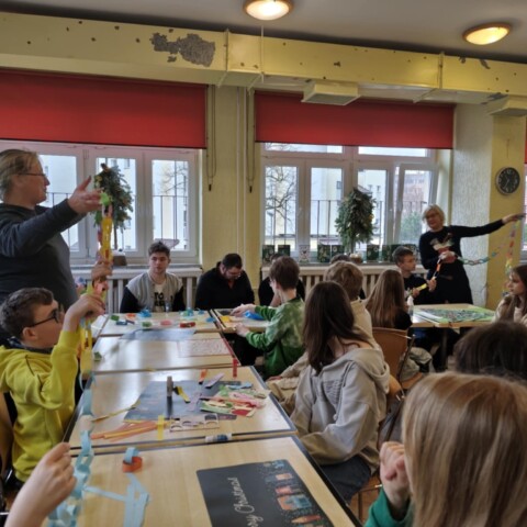Uczniowie klasy I B zrealizowali projekt społeczno – edukacyjny polegający na tworzeniu pomocy naukowych dla podopiecznych Specjalnego Ośrodka Szkolno – Wychowawczego. Przygotowane materiały zostały dopasowane do potrzeb dzieci i wykonane z dużym zaangażowaniem. Kolejnym etapem było spotkanie informacyjne, podczas którego uczniowie mieli okazję poznać wychowanków ośrodka oraz przekazać przygotowane pomoce. Następnie odbyły się wspólne warsztaty świąteczne, w trakcie których uczestnicy tworzyli kartki i ozdoby bożonarodzeniowe. Projekt był cennym doświadczeniem, uczącym empatii, współpracy oraz wrażliwości na potrzeby innych.