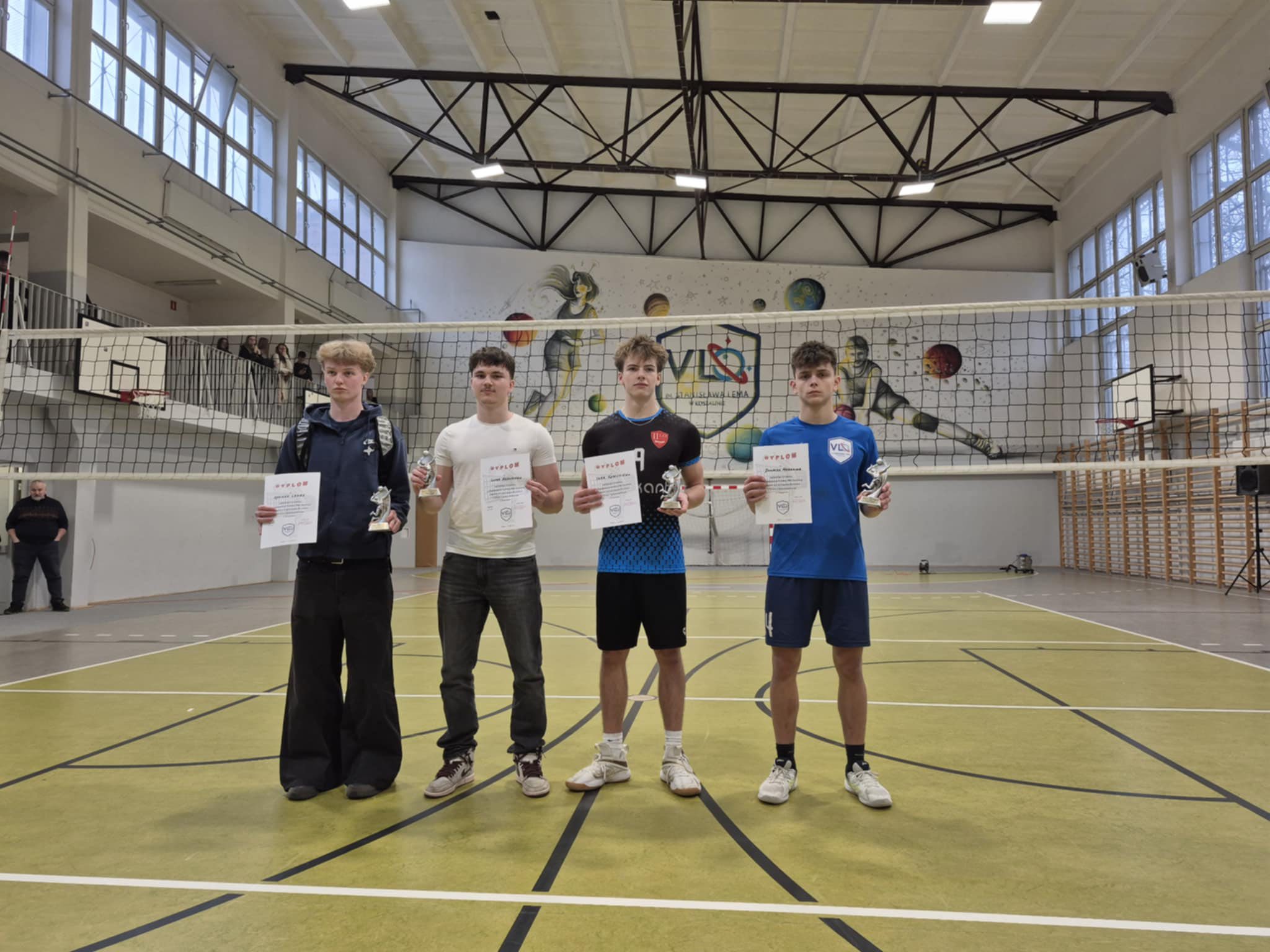 Mikołajkowy Turniej w Piłce Siatkowej Chłopców 2025-12-18 przez izac Tradycyjnie w okresie przedświątecznym zorganizowaliśmy Mikołajkowy Turniej w Piłce Siatkowej Chłopców.W tym roku zajęliśmy I miejsce!Udało nam się wygrać wszystkie mecze, sprawiając ogromną radość całej społeczności szkolnej.Serdecznie dziękujemy reprezentantom koszalińskich szkół średnich za przyjęcie zaproszenia oraz za sportową postawę