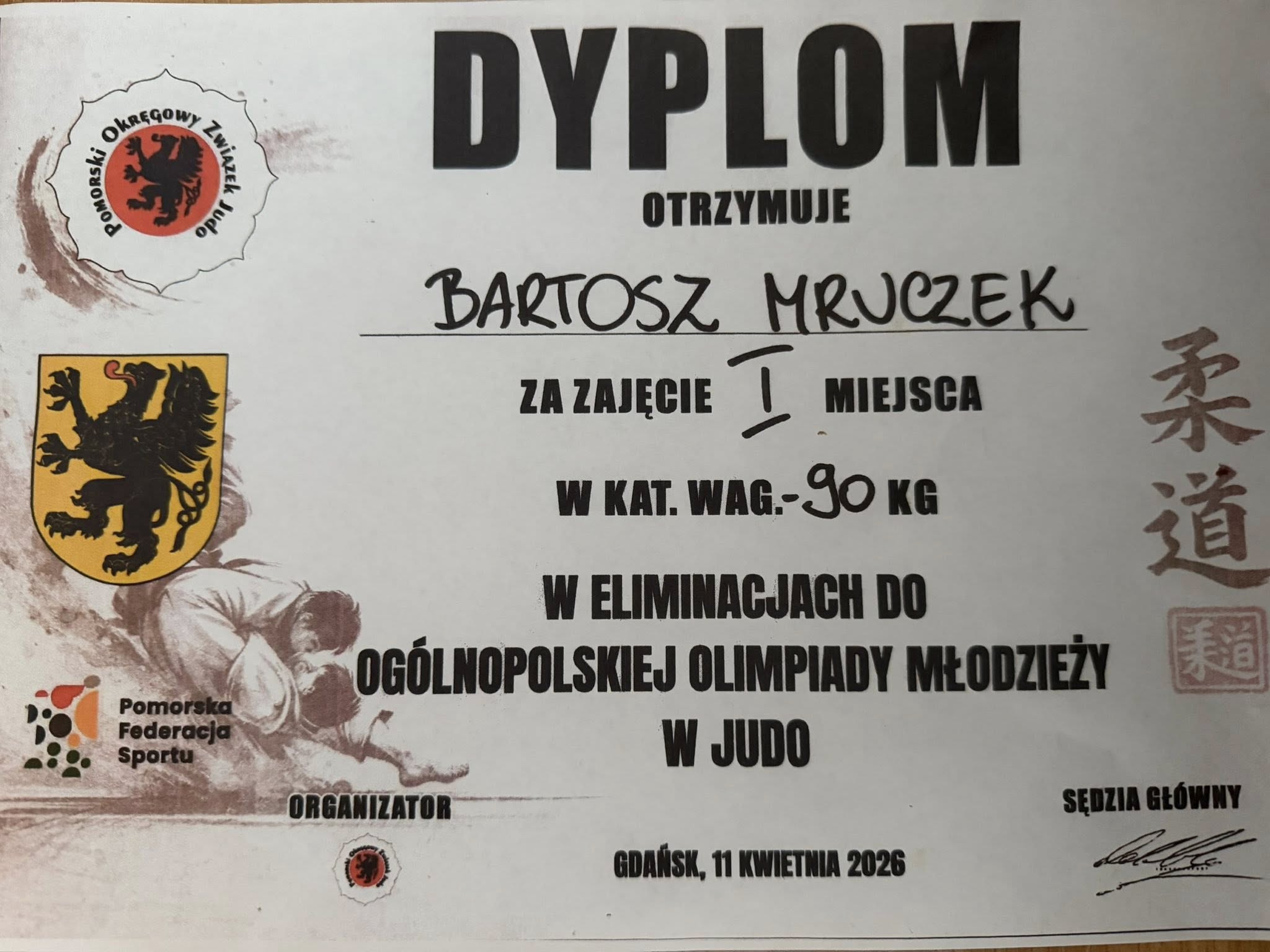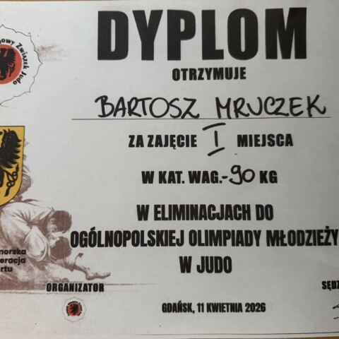 Z ogromną dumą i radością informujemy, że Bartosz Mruczek z klasy 1A wywalczył awans do Ogólnopolskiej Olimpiady Młodzieży w Judo.